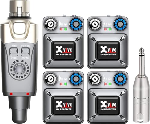 Xvive U4R4 Système sans Fil in-Ear Monitor Système IEM à 4 Récepteurs et 1 Transmetteur pour Les répétitions et Les Concerts de L'orchestre