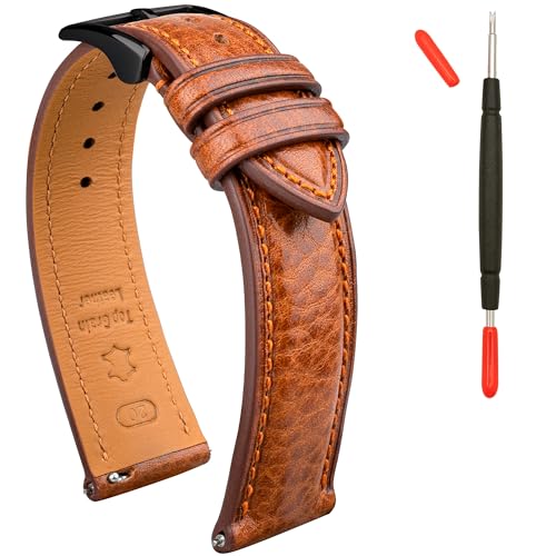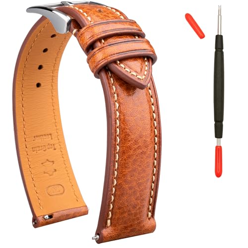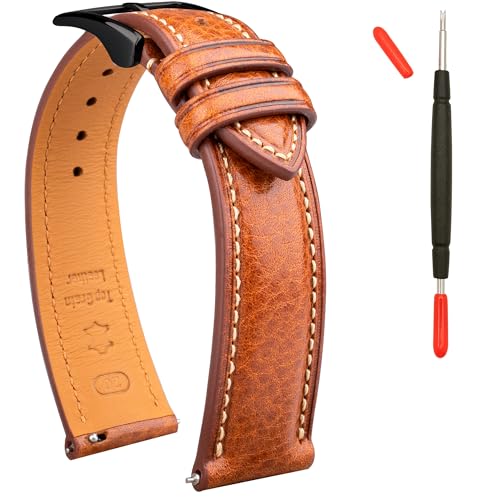 Gomvadr Bracelet de montre en cuir à libération rapide, style vintage, tanné à l'huile, pour hommes et femmes, 16 mm, 18 mm, 19 mm, 20 mm, 21 mm, 22 mm, 24 mm, 22mm-XXL, Cuir, Pas de gemme