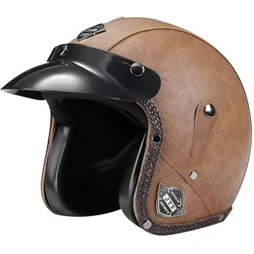 Demi Casque Moto Vintage Casques Bols Casque Mobylette Jet Homologué ECEDOT Rétro Demi Casques Moto Vélo Scooter Chopper pour Adultes Homme Et Femme avec Visière 18,XXL=63~64CM