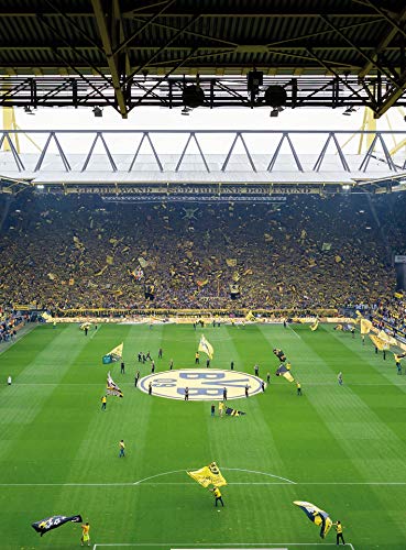 A.S. Création Papier peint photo Papier peint BVB Südtribüne en jaune, noir et vert - papier peint pour différentes pièces - papier peint intissé tableau mural XXL 192 x 260 cm
