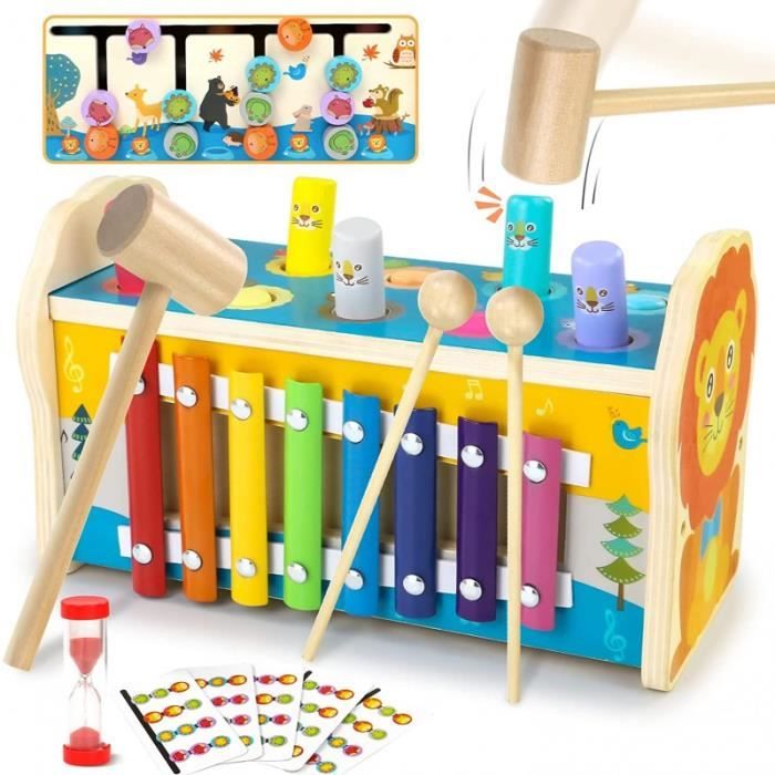 Bebe Enfant Bois Bus Jouet Enfant Jeux Construction Bois Xylophone Bebe 18 Mois avoir Forme Géométrique 8 ton Et Marteau en Bois
