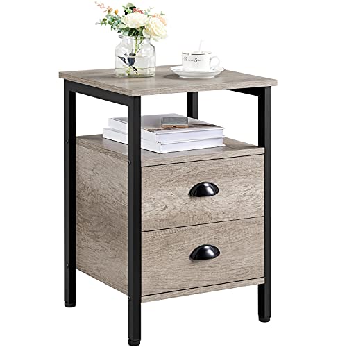 Yaheetech Table d'Appoint Table de Chevet Industrielle en Bois Cadre en Métal Bout de Canapé avec Compartiment Ouvert 2 tiroirs pour Salon Chambre à Coucher Bureau Gris