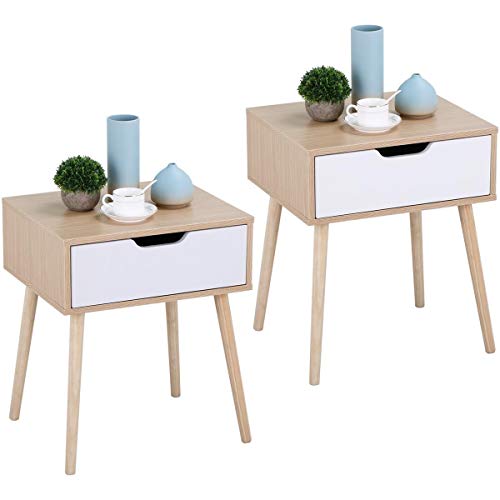Yaheetech Lot de 2 Tables de Chevet Scandinaves, Table de Nuit, Tables d'Appoint avec Tiroir, Table de Lit pour Salon Couloir Chambre Bureau Moderne Brun Clair