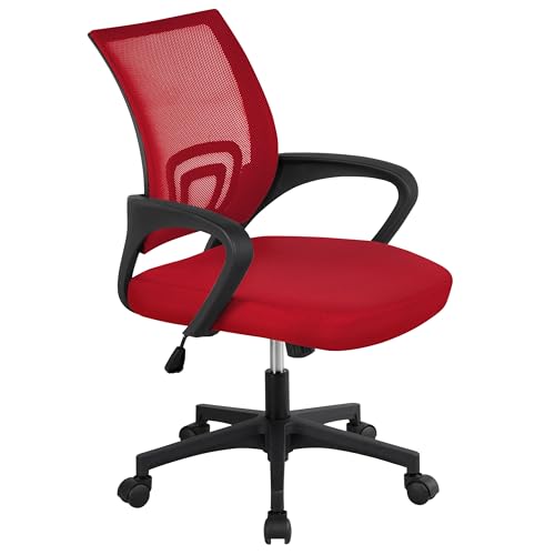 Yaheetech Chaise de Bureau à roulettes en Maille Fauteuil Ordinateur Inclinable Pivotant Siège et Base Plus Larges Hauteur Réglable avec Accoudoirs Rouge