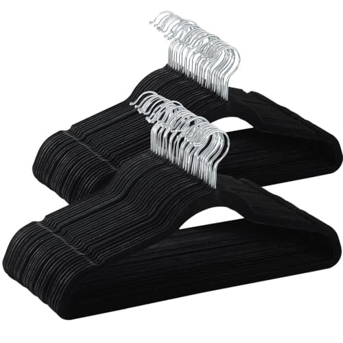 Yaheetech Lot de 100 Cintres en Velours, Antidérapant, Cintre Grande Capacité de Charge avec Crochet Pivotant à 360°, Gain de Place, pour Costumes/Chemises/Robes/Manteaux, Noir