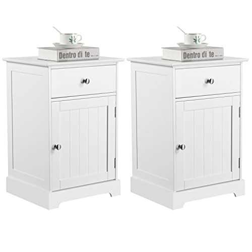 Yaheetech Lot de 2 Tables de Chevet en Bois Blanche, Tables de Nuit 1 Tiroir, Etagère Intérieur Réglable, Chambre Salon, 40 x 35 x 60 cm