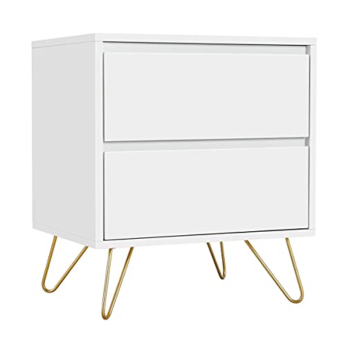 Yaheetech Tables de Chevet Chambre à Coucher avec 2 Tiroirs Table d'appoint de Salon Bout de Canapé en Bois Style Moderne Blanc et Métal 50 x 40 x 57 cm