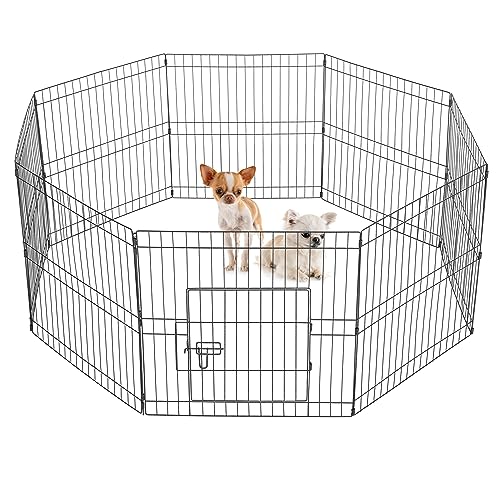 Yaheetech 8 Panneaux Parc pour Chien Cage pour Chiens Enclos Pliant à Chiots Lapins Clôture Grille Chenil pour Chien en Métal Extérieur Interieur 61cm avec Porte