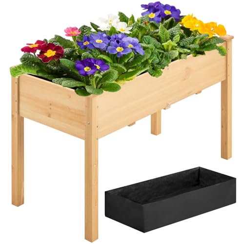 Yaheetech Carré Potager sur Pied en Bois avec Plateau Intérieur Extérieur Structure Ergonomique Trous de Drainage pour Balcon/Jardin