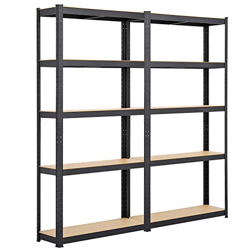 Yaheetech 2 x Étagères Charge Lourde 180 x 90 x 60 cm Clipsable Résistant Capacité 875 kg Meuble de Rangement Garage Cuisine Chambre Noir 180 x 180 x 60 cm