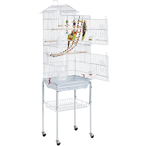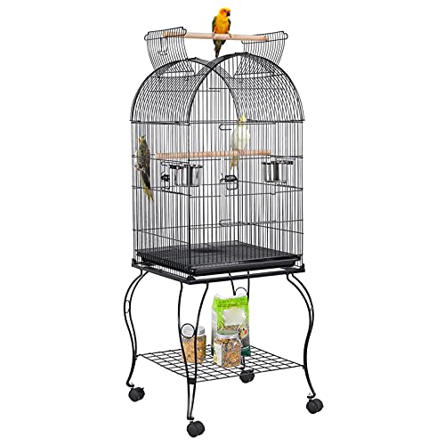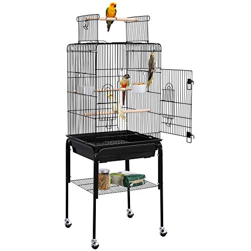 Yaheetech Cage Oiseaux avec Toiture Triple-A Cage sur roulettes avec Support Détachable pour Grosse Perruche à Collier/Conures Veuve/Conure à Joues Vertes/Calopsitte Inséparable/Conures Soleil