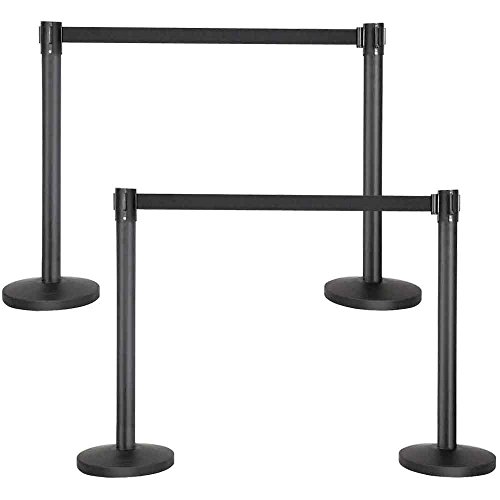 Yaheetech 4 Poteaux de Guidage avec 4 Corde 2m Rétractable Système de Balisage pour Personnes, Lourd de Base pour la Stabilité