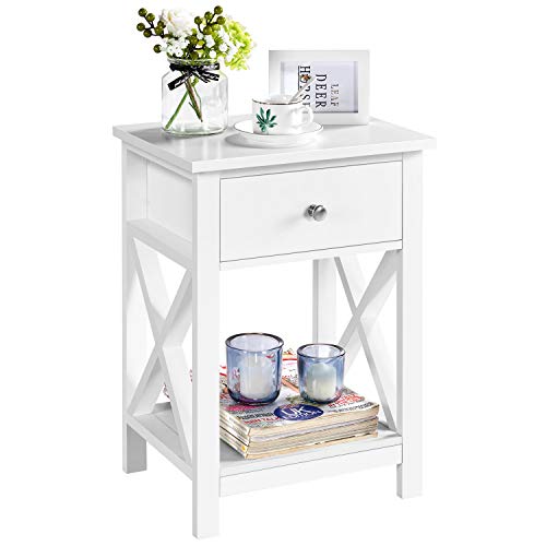 Yaheetech Table de Chevet en Bois Tables de Nuit 40 x 30 x 55 cm avec 1 Tiroir 1 Étagère Ouverte Table d'Appoint pour Chambre Salon Blanc