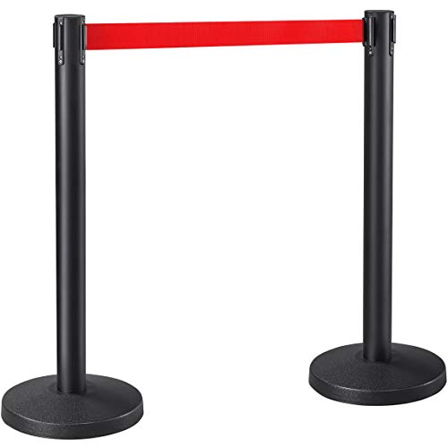 Yaheetech Lot de 2 Poteaux de Guidage de 2 m de Long avec système de Guidage Personnel, Barrière de Sécurité, poteaux de barrière Noir/Rouge pour Ecole Bar et Hôtel