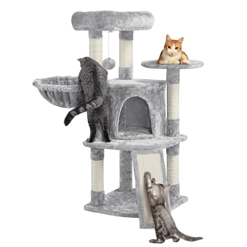 Yaheetech Arbre à Chat Hauteur 107cm Grattoir Tour de Jeux pour Chats avec Centre d'activités Griffoir en Sisal Gris Clair