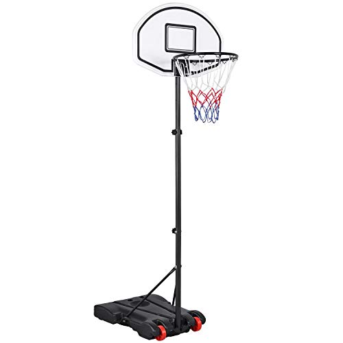 Yaheetech Panier de Basket sur Pied Exterieur Hauteur Réglable 219-279 cm Deux Roues avec Poteau Panneau Panier de Basket-Ball Remplir d’Eau ou de Sable Noir