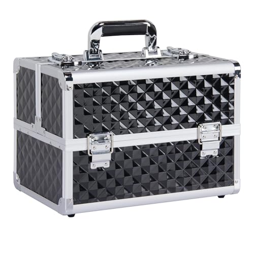 Yaheetech Malette de Maquillage Professionnelle Malette Onglerie Coffret Cosmétique Boîte à Outils Rangement avec Clé Cadre en Aluminium 34,7 x 22,2 x 25 cm Noir