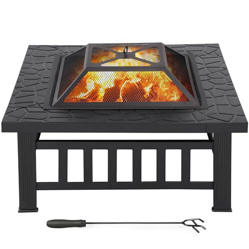 Yaheetech Brasero Extérieur 3 en 1 Carrée Multifonctionnelle 81x81x50cm pour Terrasse Balcon Poêles à Bois avec Couverture en Maille Poker Noir