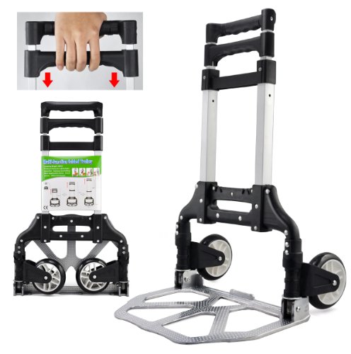 Yaheetech Diable Chariot de Transport Pliant Main Réglable de 64cm à 100cm en Aluminium Charge Max 75kg avec Bandes Elastique