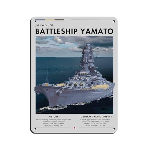 Poster rétro japonais de cuirassé Yamato en métal - Décoration murale - 30 x 40 cm