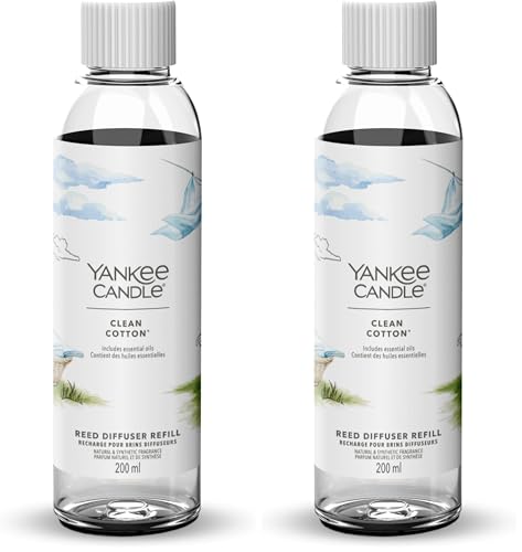 Yankee Candle Signature Recharge brins diffuseur | Clean Cotton | 200 ML | Jusqu’à 20 semaines de Fragrance | Cadeau Parfait pour Les Femmes (Lot de 2)
