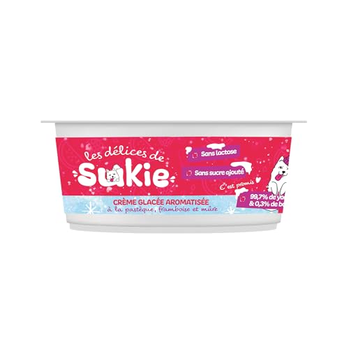 RIGA - Les Delices De Sukie Glace - Friandises Chien - Crème Glacée Aromatisée - Pastèque, Framboise et Mûre - Yaourt Pasteurisé - Sans Lactose, Sucre Ajouté - Gourmandise Naturelle Savoureuse - 110 g