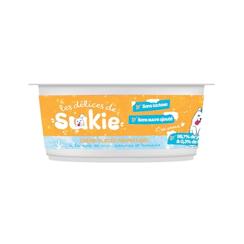 RIGA - Les Delices De Sukie Glace - Friandises Chien - Crème Glacée Aromatisée - Coco, Ananas et Banane - Yaourt Pasteurisé - sans Lactose, Sucre Ajouté - Gourmandise Naturelle Savoureuse - 110 g