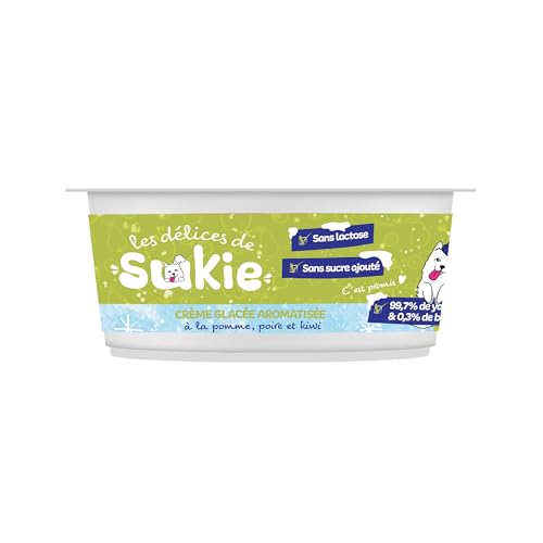 RIGA - Les Delices De Sukie Glace - Friandises Chien - Crème Glacée Aromatisée - Pomme, Poire et Kiwi - Yaourt Pasteurisé - sans Lactose, Sucre Ajouté - Gourmandise Naturelle Savoureuse - 110 g