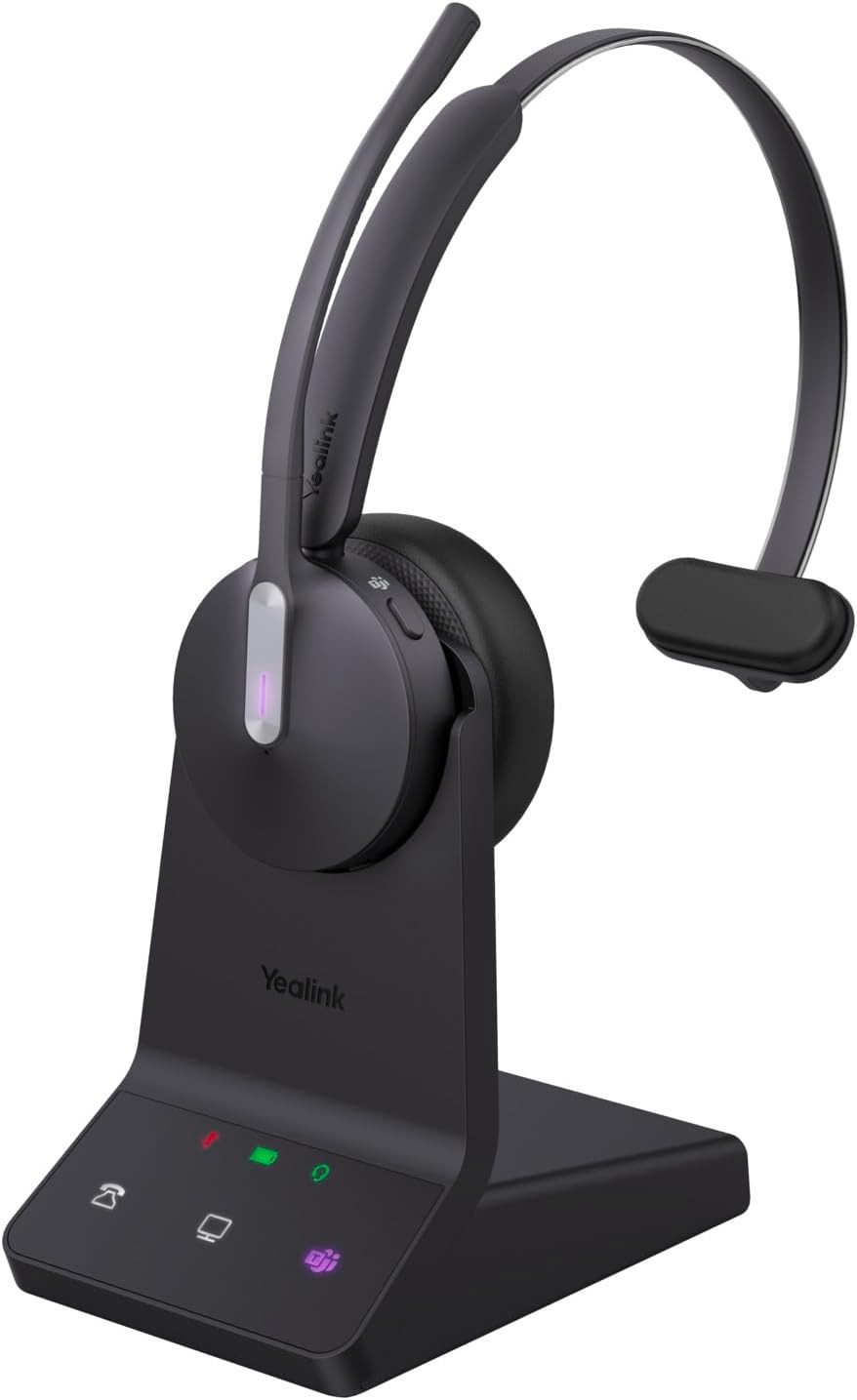 Yealink WH64 Hybrid Casque Bluetooth sans Fil DECT, Mono Casque avec Station de Charge,492 ft, 3X Mic, 26H de Temps de Parole, Casque d'écoute portatif pour Le Bureau, PC, Certifié Microsoft Teams