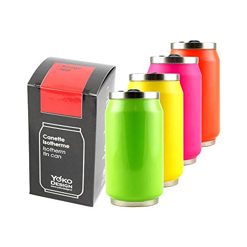 YOKO DESIGN Canette Isotherme de 280 ml coloris rouge brillant, Double Paroi en Acier Inoxydable, sans BPA, Gourde réutilisable éco-responsable pour Eau, Sport, Enfant, Bureau, Voyage