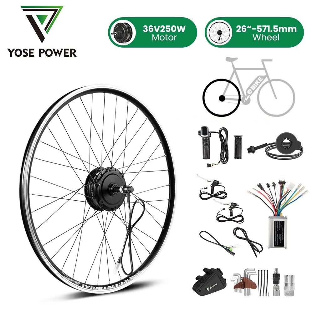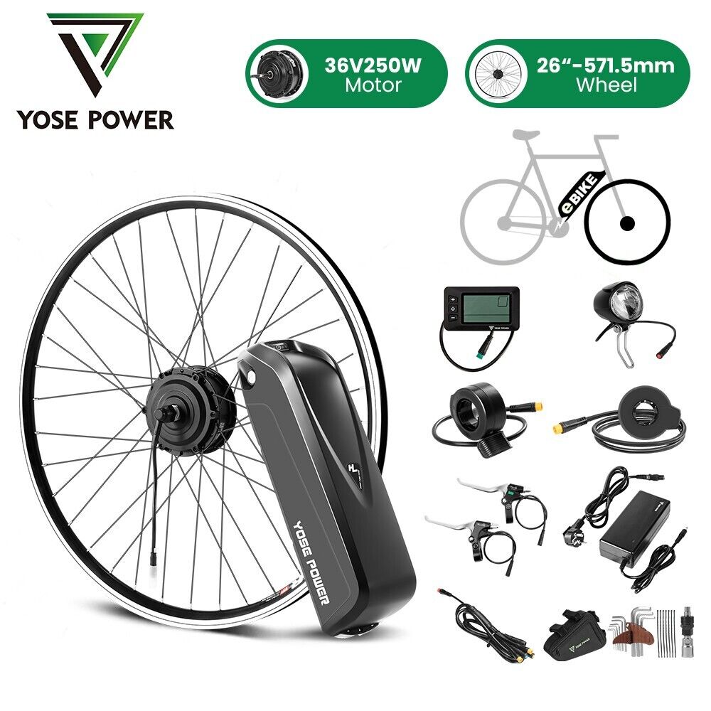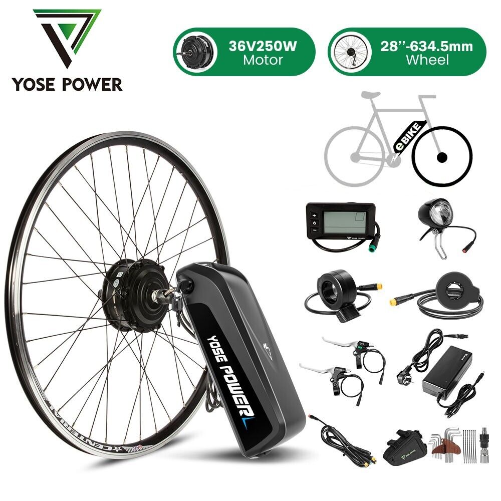 YOSE POWER Ebike Kit 36V250W 28 "kit de Conversion de moyeu pour vélo électrique Avant avec Batterie HL Plus 36V 15.6Ah DIY e-Bike LCD