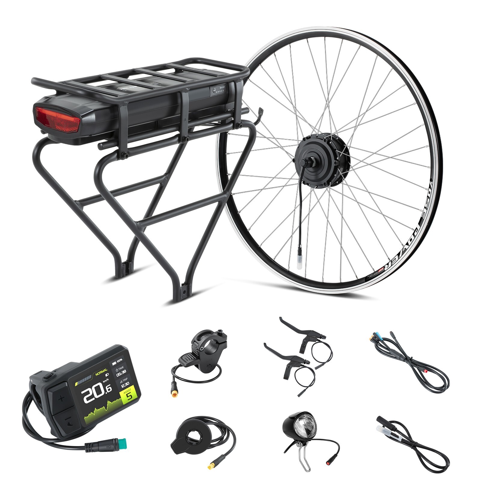 28'' E-Bike Kit de Conversion 36V250W Motor Avant+36V13Ah Batterie Porte-bagages