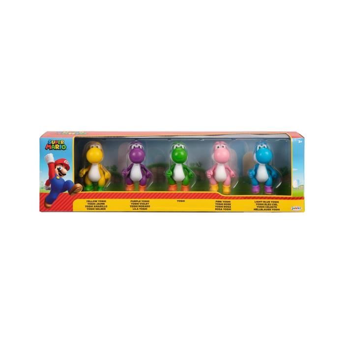 Coffret 5 Figurines Super Mario - JAKKS - Yoshi Vert Jaune Bleu Rose et Violet - Pour Enfant