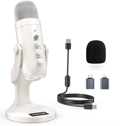 zealsound Microphone USB Podcast : réduction de Bruit, sourdine, écho, Gain. Compatible PC, Mac, iPhone, Android, PS4/PS5. Idéal Streaming, Jeu, ASMR, Chant, Youtubers, Twitch. Micro K66 Blanc nacré