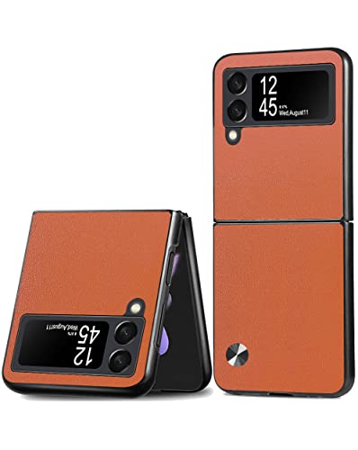 HONLEN Coque de pour Samsung Galaxy Z Flip3 / Samsung Galaxy Flip 3 2021 (6.7" inches) Étui de Téléphone Professionnel en Cuir, Orange