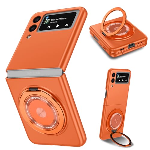 HUUMAGIC Étui à Rabat magnétique en Cuir avec Anneau de Protection pour Samsung Galaxy Z Flip 7 6 5 4 3 (pour Galaxy Z Flip 6/Orange)