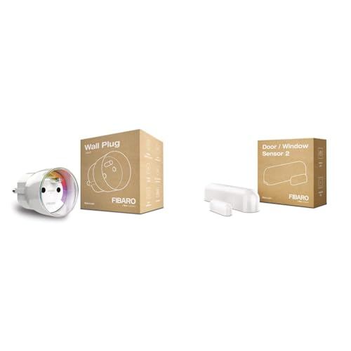 FIBARO Wall Plug/Prise Intelligente Type E, Z-Wave +, Incolore & Door/Window Sensor/Détecteur de Porte/Fenêtre Z-Wave +