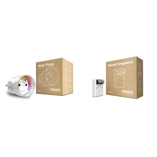 FIBARO Wall Plug/Prise Intelligente Type E, Z-Wave +, Incolore & Smart implant/Détecteur Universel Z- Wave +, Gris