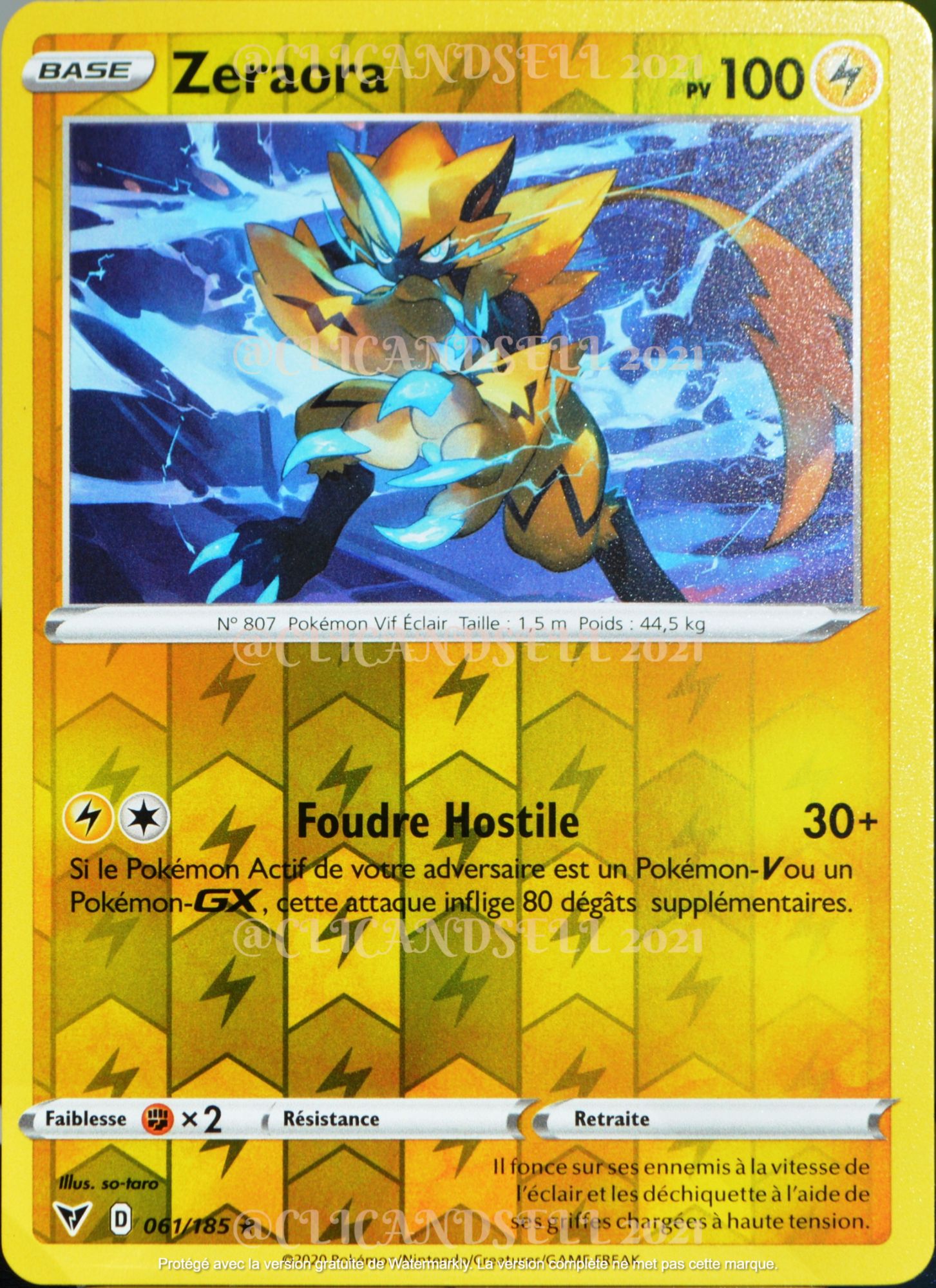 Carte Pokémon 061/185 Zeraora ?H 100 Pv - Reverse Eb04 - Épée Et Bouclier Voltage Éclatant Neuf Fr