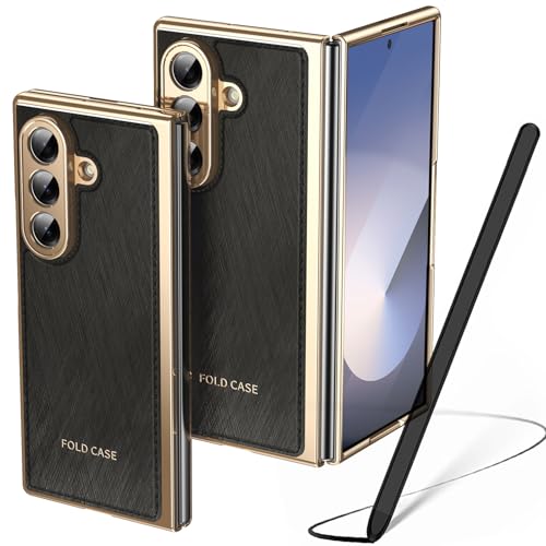 Étui pour Galaxy Z Fold7 avec Un Stylet, étui Fold 7 avec Protecteur d'écran Avant + Emplacement pour S Pen + Protection de charnière, étui en Cuir pour Samsung Galaxy Z Fold7-Noir