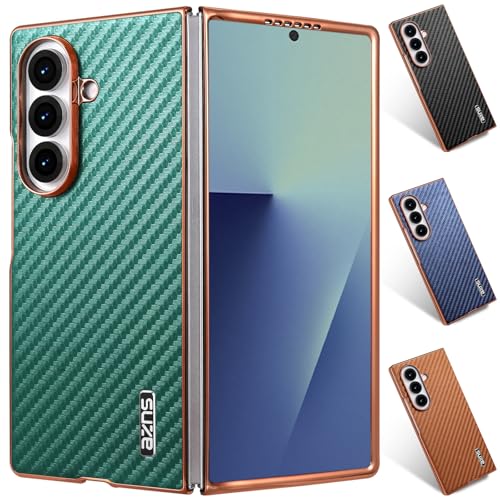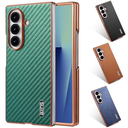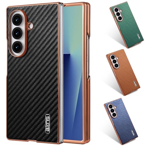 CusPra Étui pour Samsung Galaxy Z Fold 7 avec porte-stylo, clip ceinture et porte-cartes, étui de luxe en cuir fibre de carbone avec passant de ceinture, clip en métal et fermeture magnétique