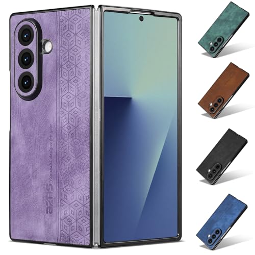 Étui en Cuir à Motif Luxueux pour Samsung Zfold 7 6 5 4 3 5g, Support Pliable Miroir, Protection Antichoc (pour Galaxy Z Fold6/Violet)