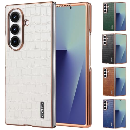 Étui en Cuir à Motif Luxueux pour Samsung Zfold 7 6 5 4 3 5g, Support Pliable Miroir, Protection Antichoc (pour Galaxy Z Fold6/Blanc)