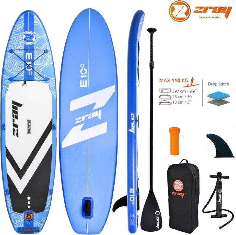 Zray, Sup Stand Up Paddle Gonflable Evasion Deluxe 9.9', PB-ZE10B, Planche Gonflable Dropstitch, Pack Pagaie, Pompe, Sac de Transport, Kit, Opt. Siege Kayak, Jusqu’à 100kg, 210l, 297x76x13cm