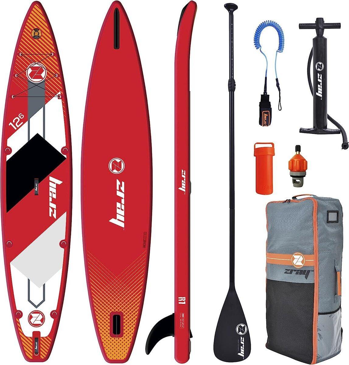 Zray Sup Stand Up Paddle Gonflable Rapid 12'6 - PB-ZR1B - Dropstitch Double Couche Fusion + Stringer en Fibre de Carbone - Pack Complet - Max 160kg - 300L - 381x76x15cm